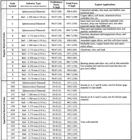 Minimum Thickness Chart for Rockwell Hardness Testing